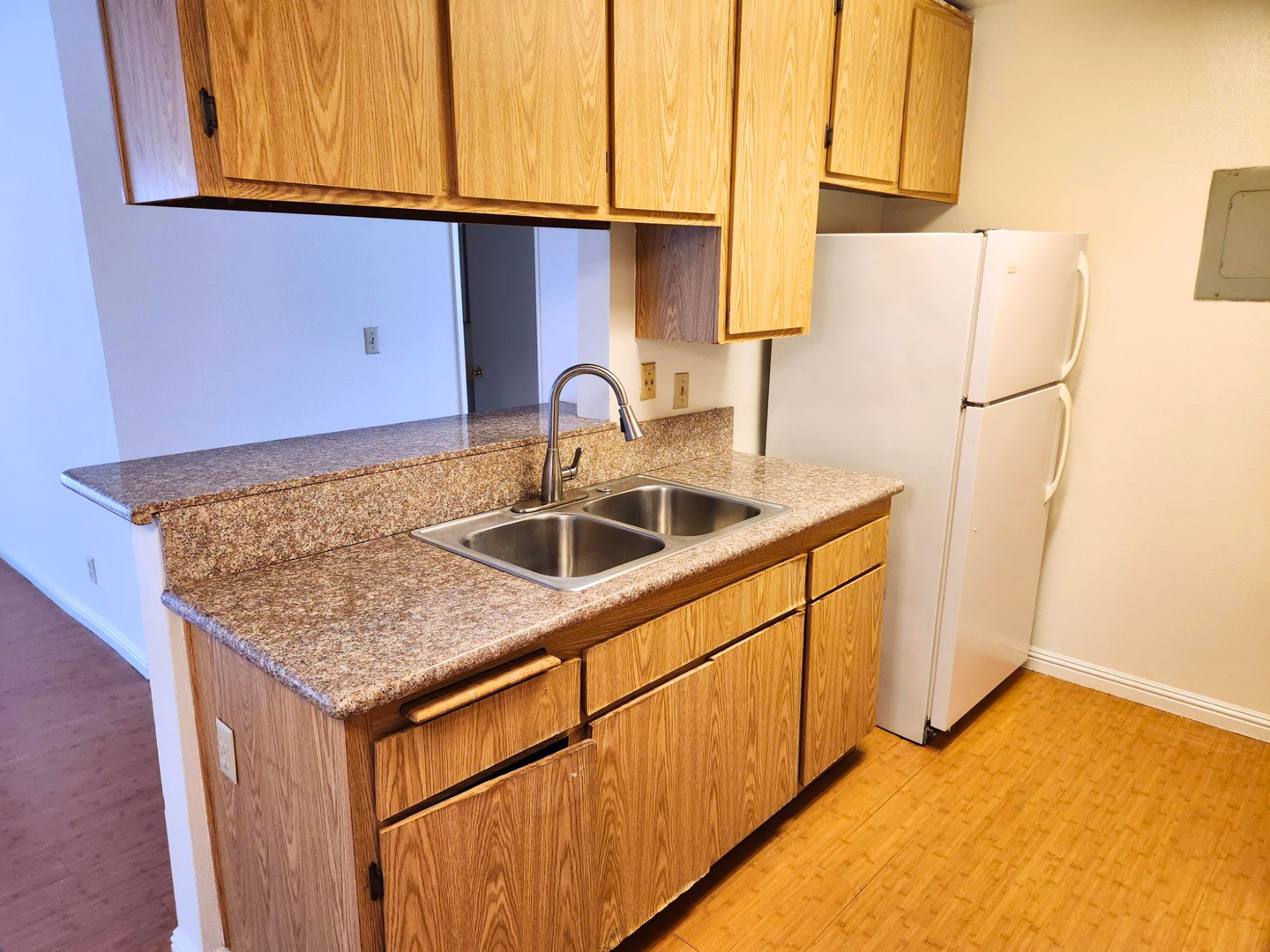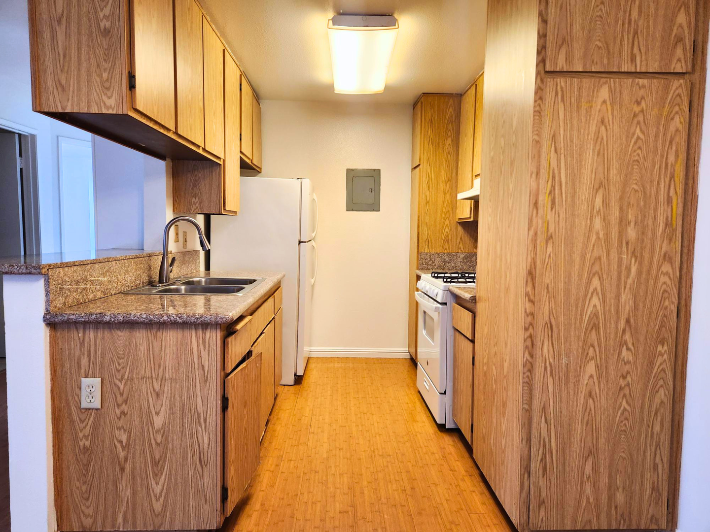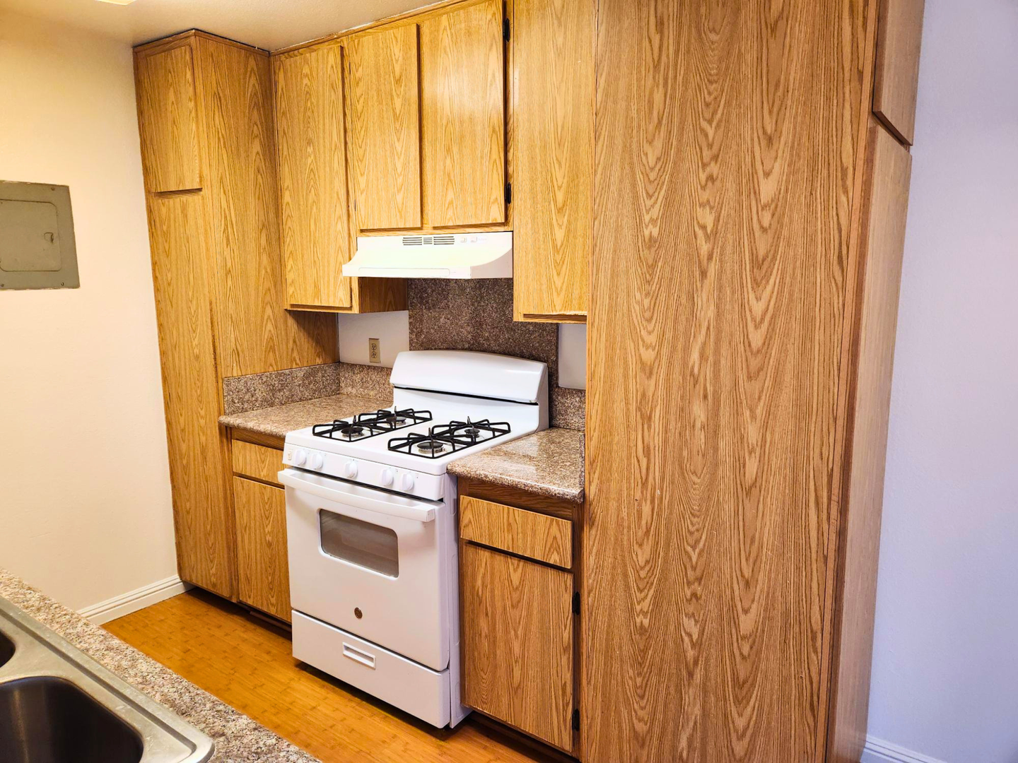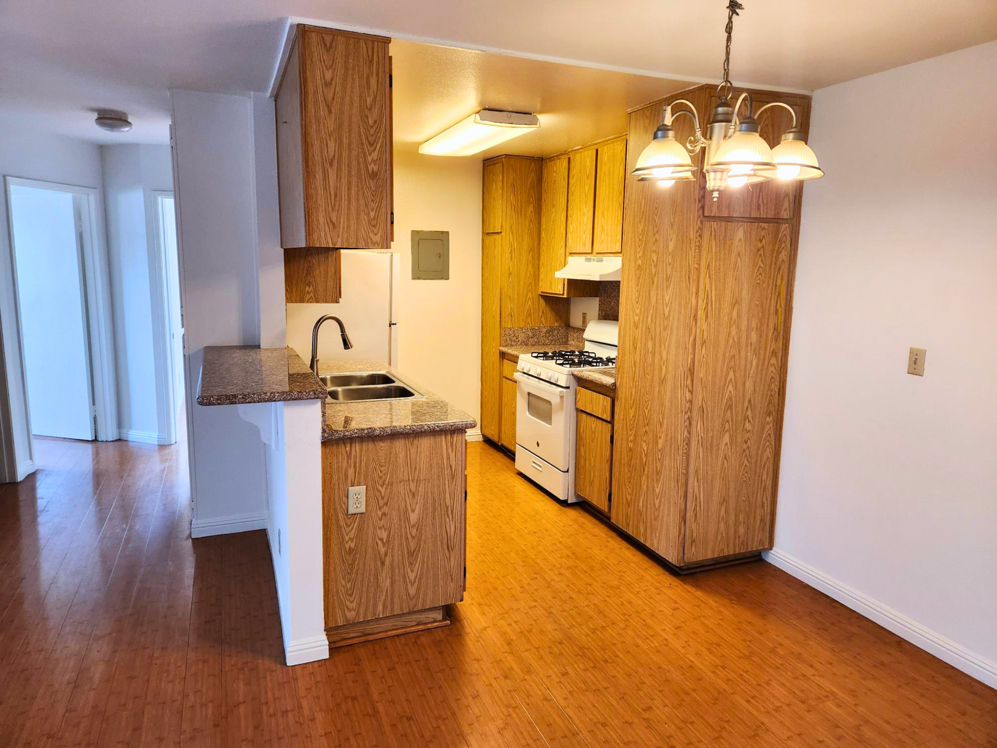 • Kitchen includes a stove and refrigerator